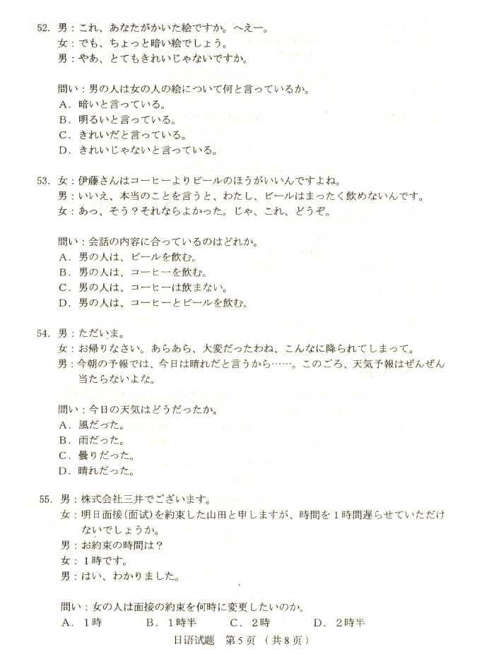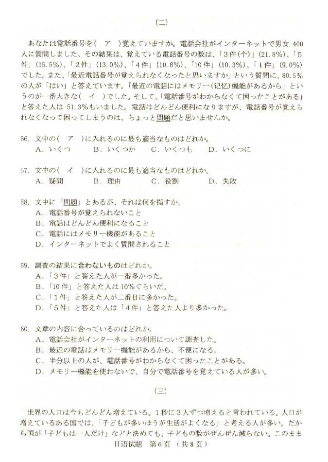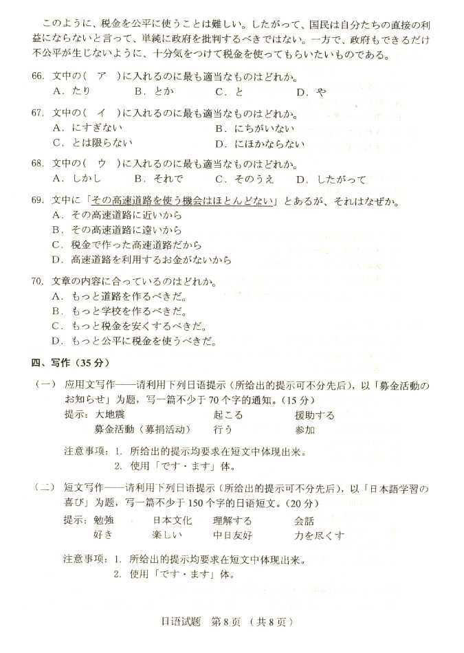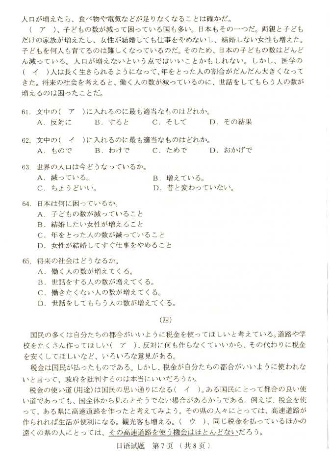 2011年全国成人高考高起点《日语》试题及答案