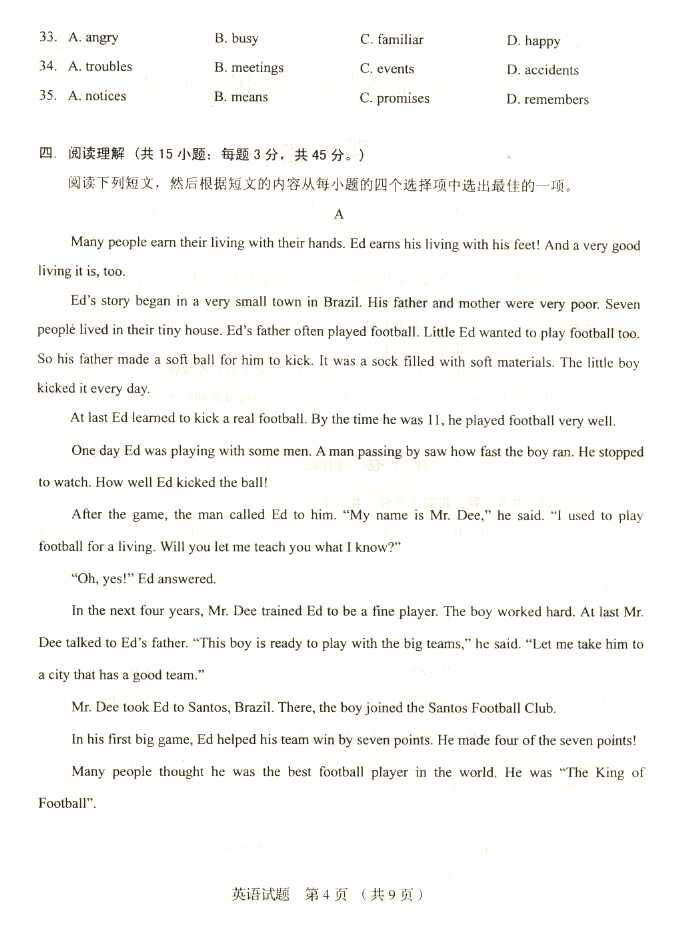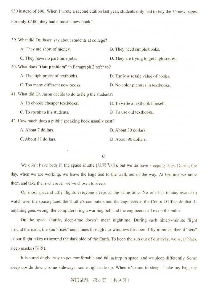 2011年全国成人高考高起点《英语》试题及答案