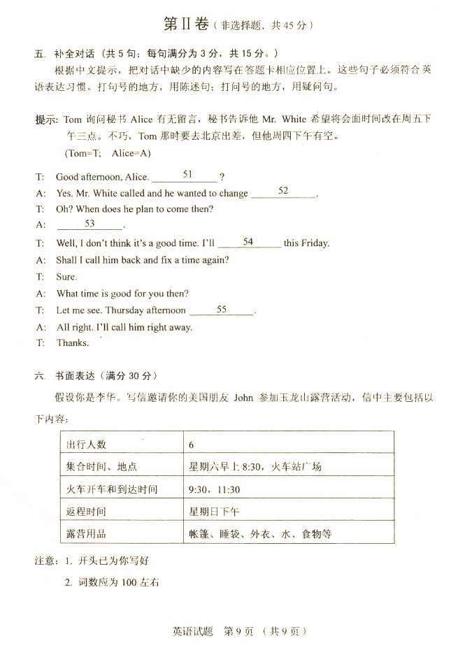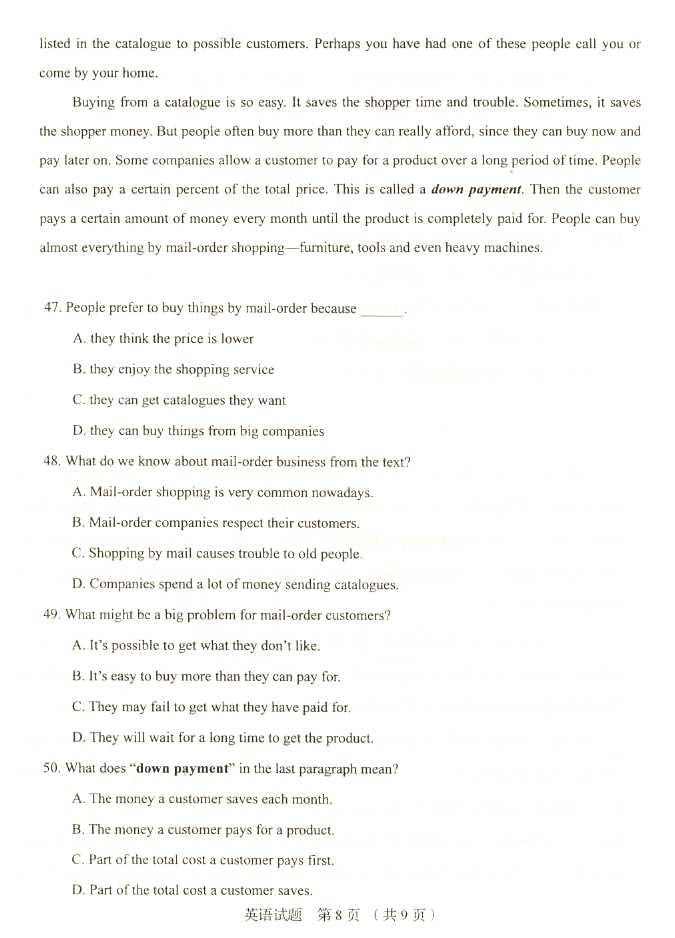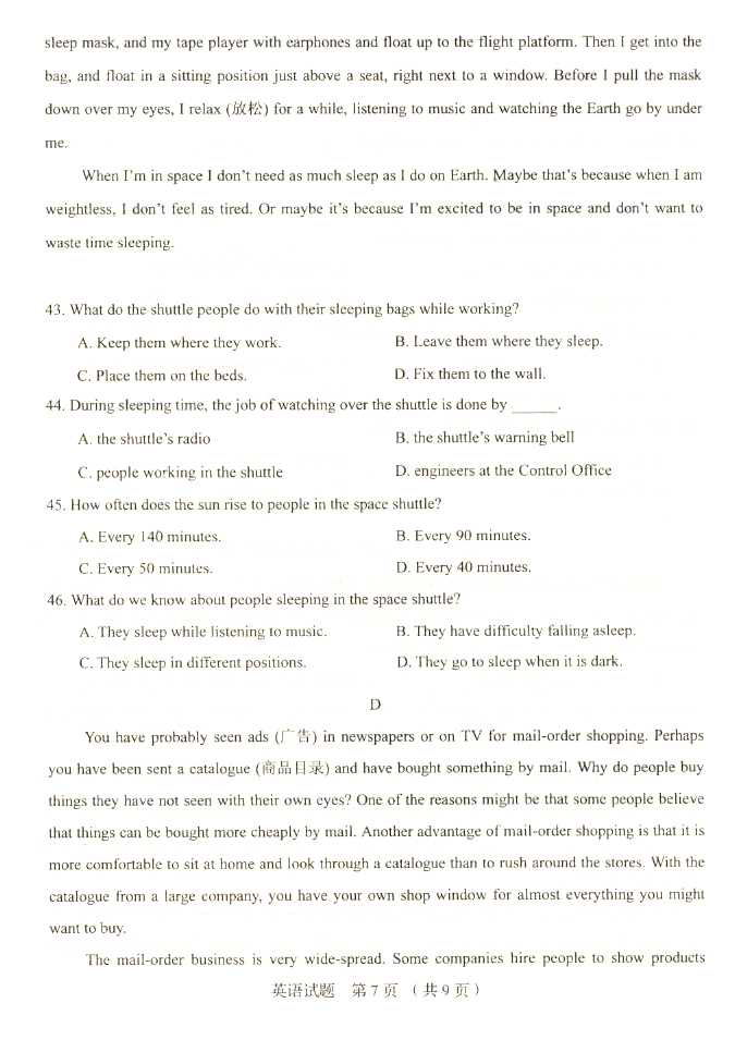2011年全国成人高考高起点《英语》试题及答案
