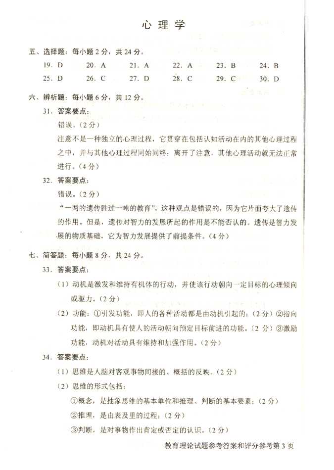 2011年全国成人高考专升本《教育理论》试题及答案