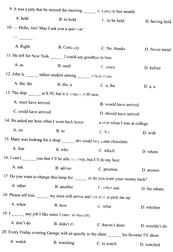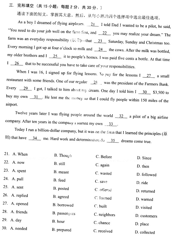 2014年成人高考高中起点《数学》(文史)真题及答案