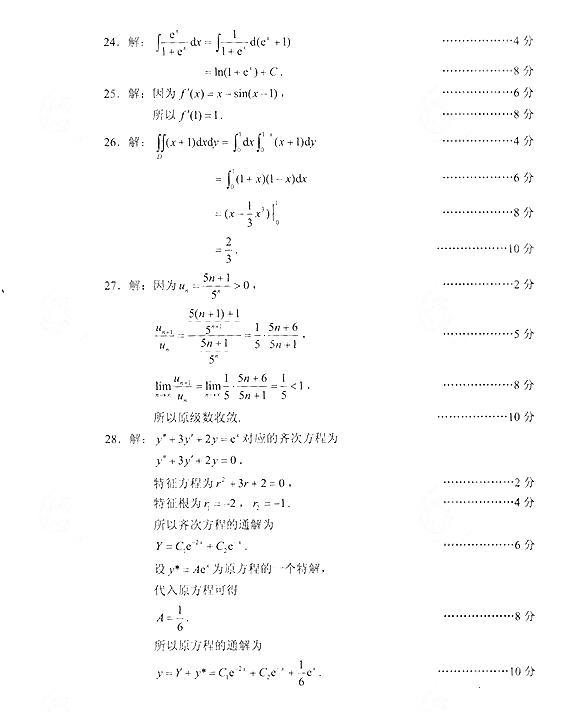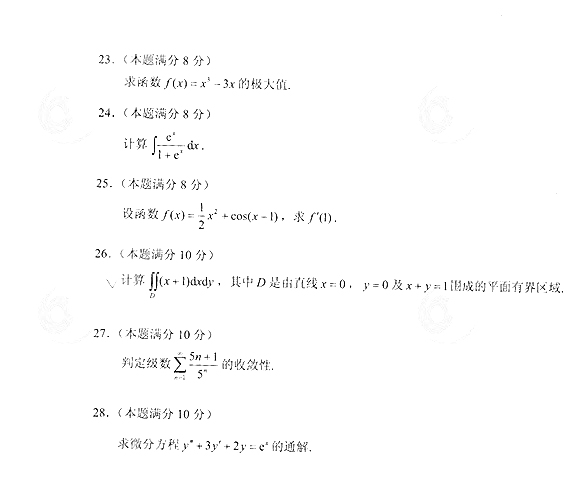 2014年成人高考专升本《高等数学(二)》真题及答案