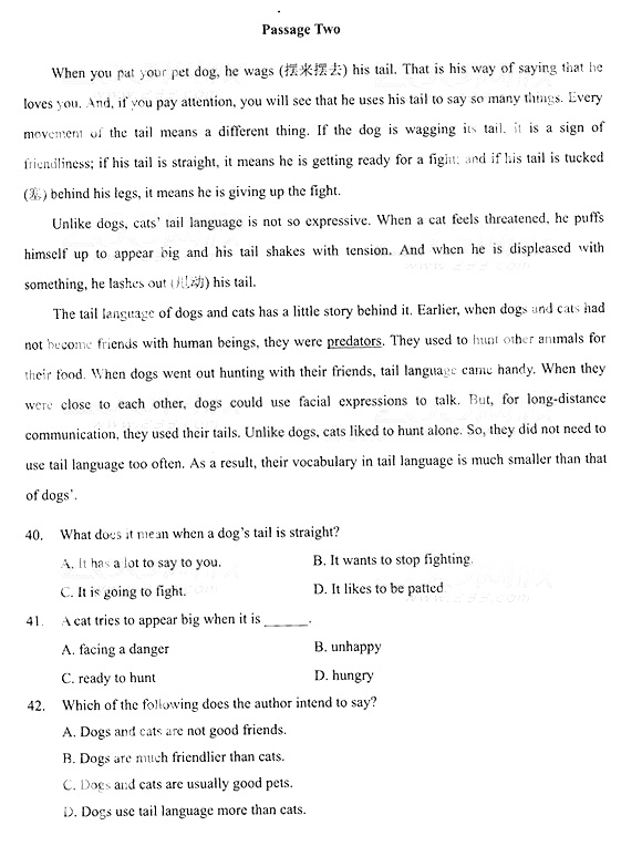2014年成人高考专升本《英语》真题及答案