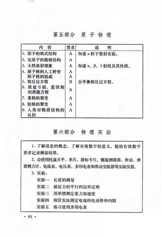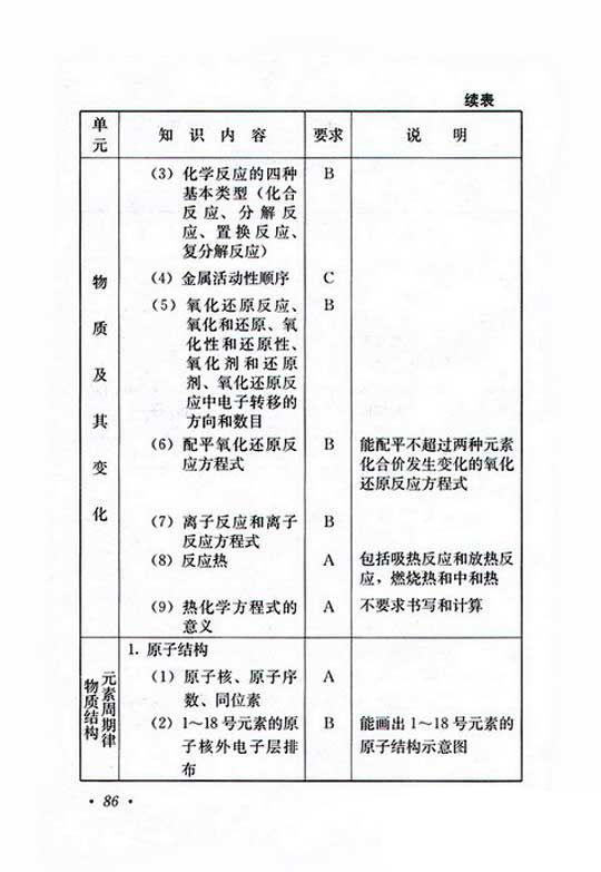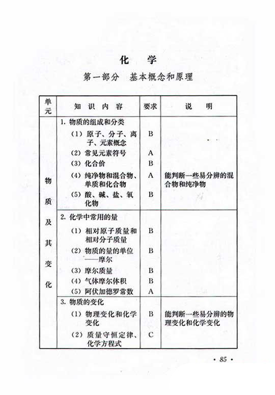 2019年成人高考高起点理化复习考试大纲