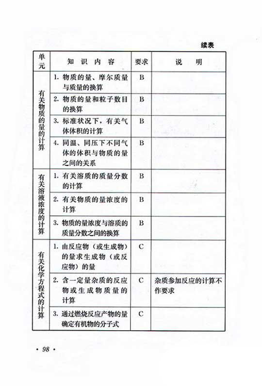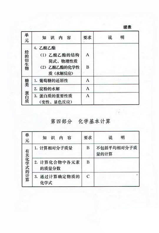 2019年成人高考高起点理化复习考试大纲