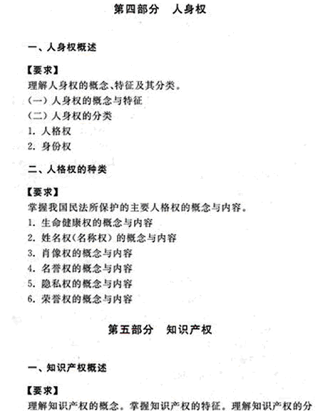 2019版成人高考专升本民法复习考试大纲