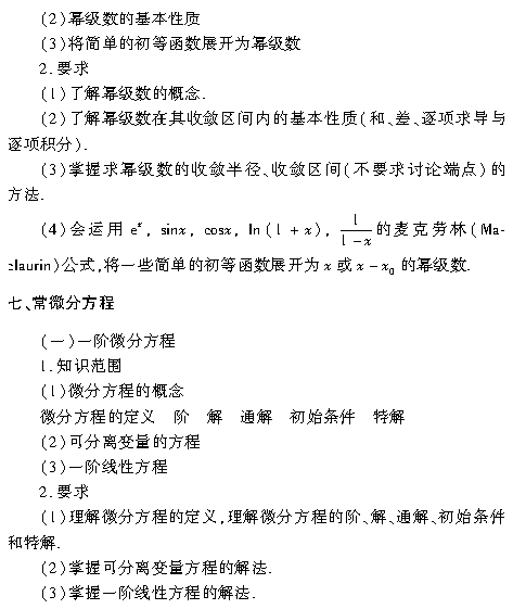 2019版成人高考专升本高数(二)复习考试大纲